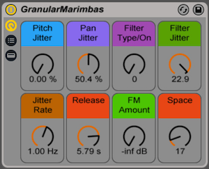 Granular Marimbas was created by combining two identical marimba samples and resynthesizing them in Kyma’s Sample Cloud.
